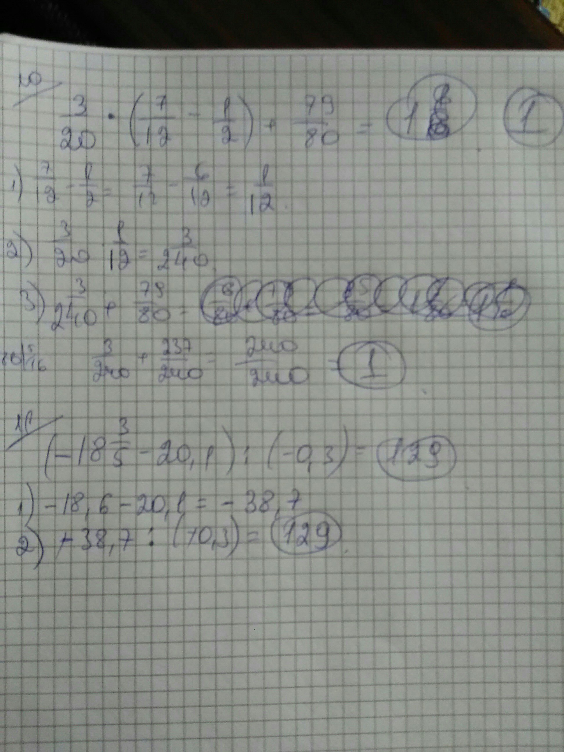 2) (-18,6-20,1):(-0,3)= (-38,7):(-0,3)= 129