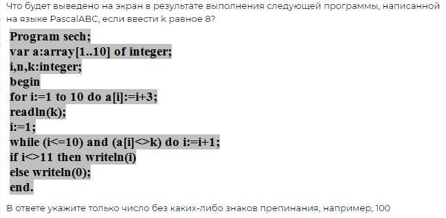Дабы не делать лишние вычисления, то выполним цикл в строке 5 до момента, когда элемент массива (a[i]) будет равен 8.