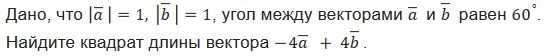 |-4a+4b|²=16a²-32ab+16b²=16-32*(1/2)+16=16