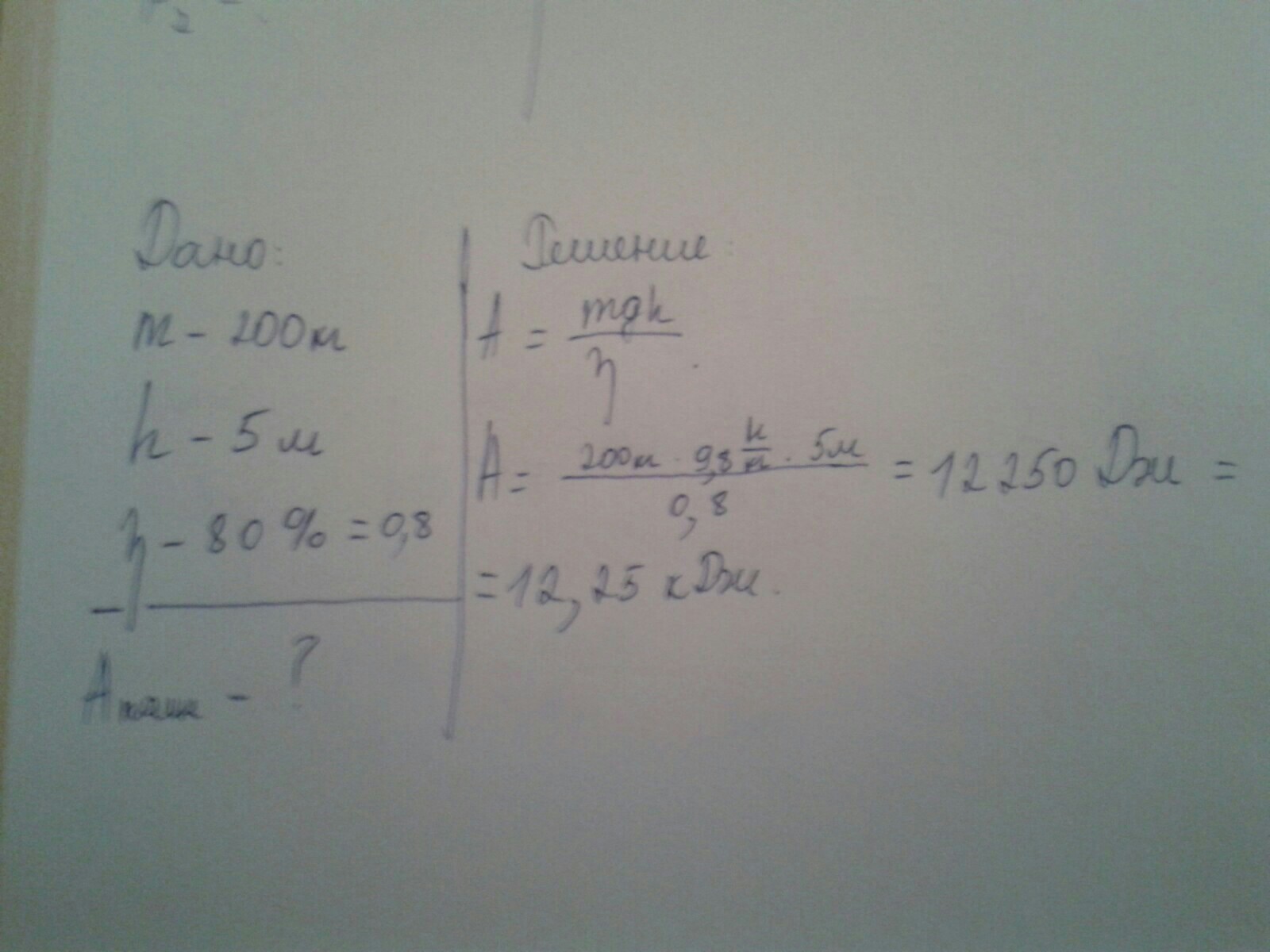 Ответ: полная работа равна 12,25 кДж.