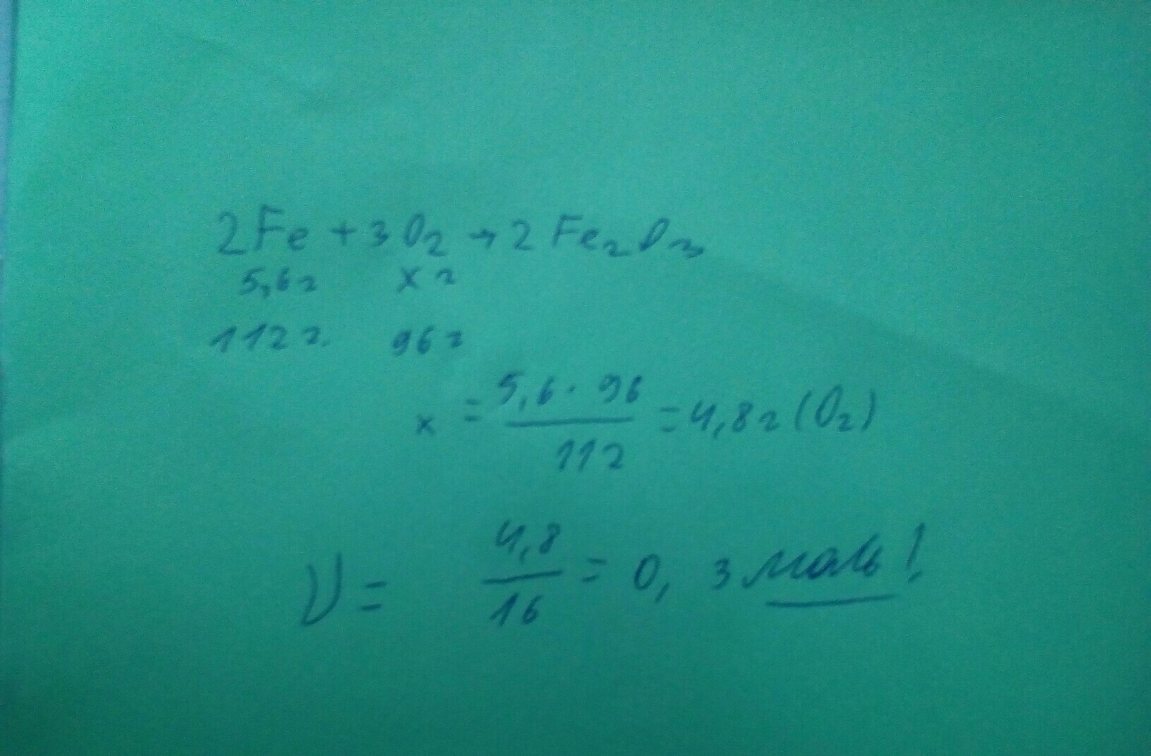 Какое количество вещества и масса кислорода потребуется для окисления 5,6г железа(Н)?