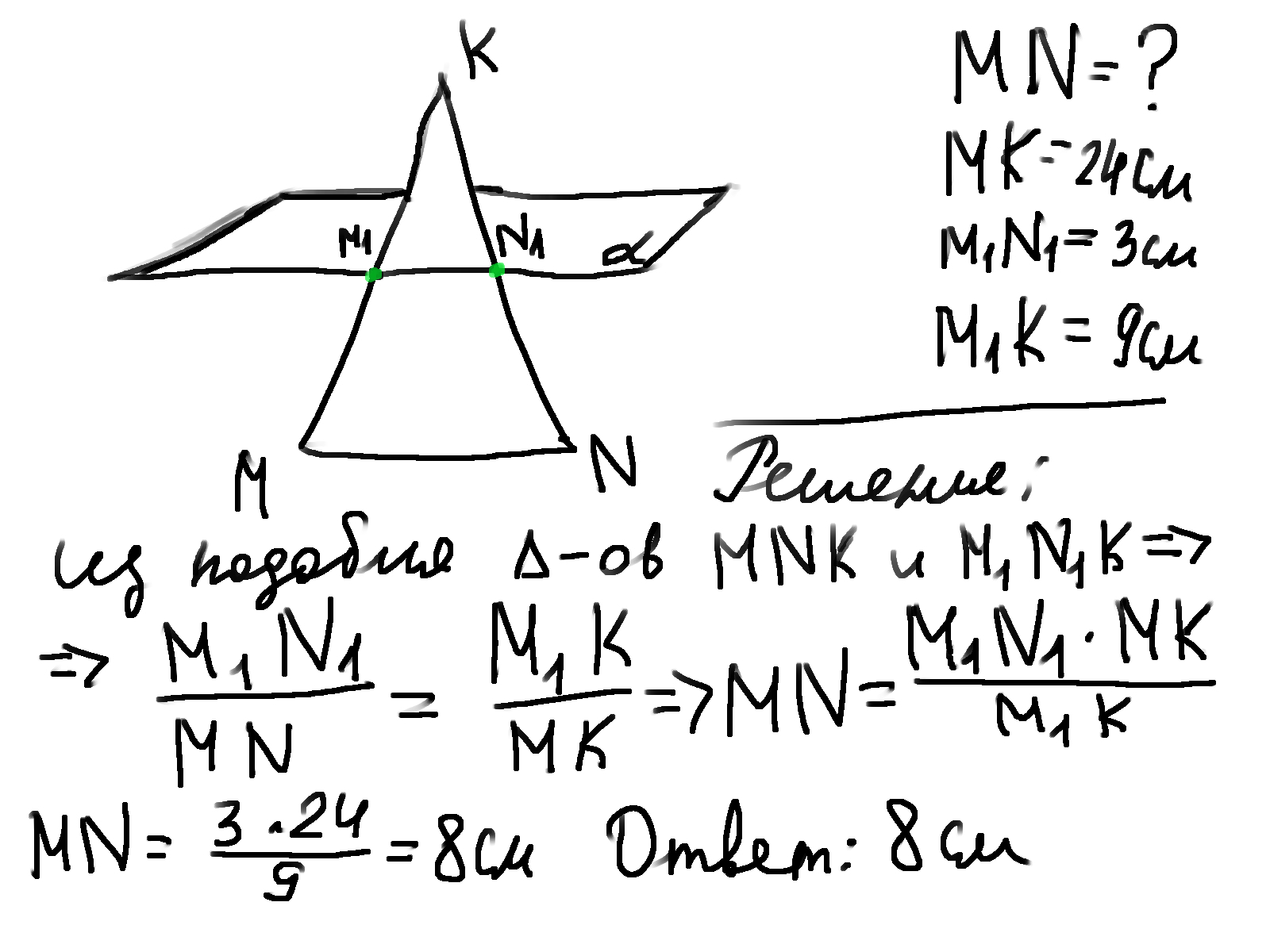 Найдите MN, если MK = 24 см, M1N1 =3 см , M1K = 9 см.