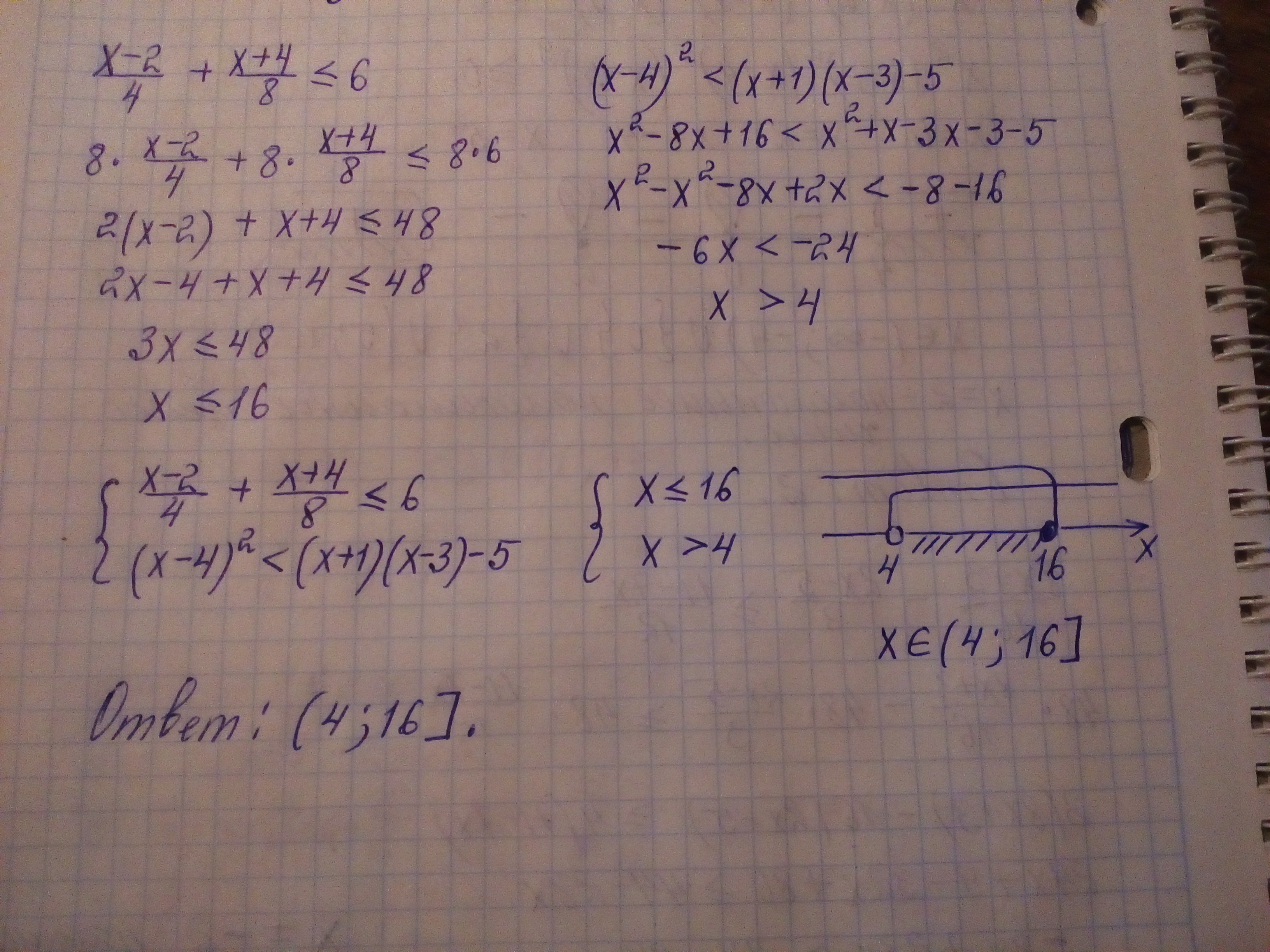(x-2/4)+(x+4/8)<= 6 | x2