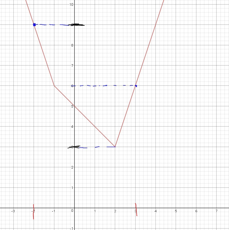 На графике я обозначила красным границы области значений по оси абсцисс ,синим края попадания функции в наши границы ,а чёрным общие границы,которые и дают нам ответ