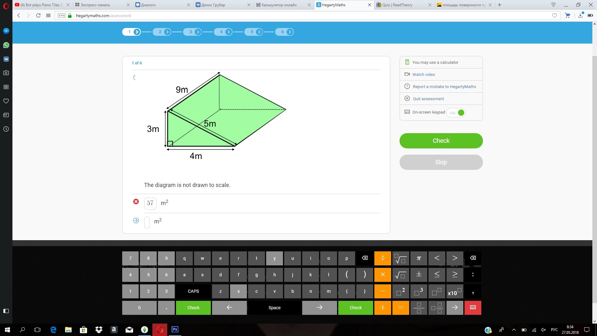 S₁ = 1/2 * 3 * 4 = 6 м²
