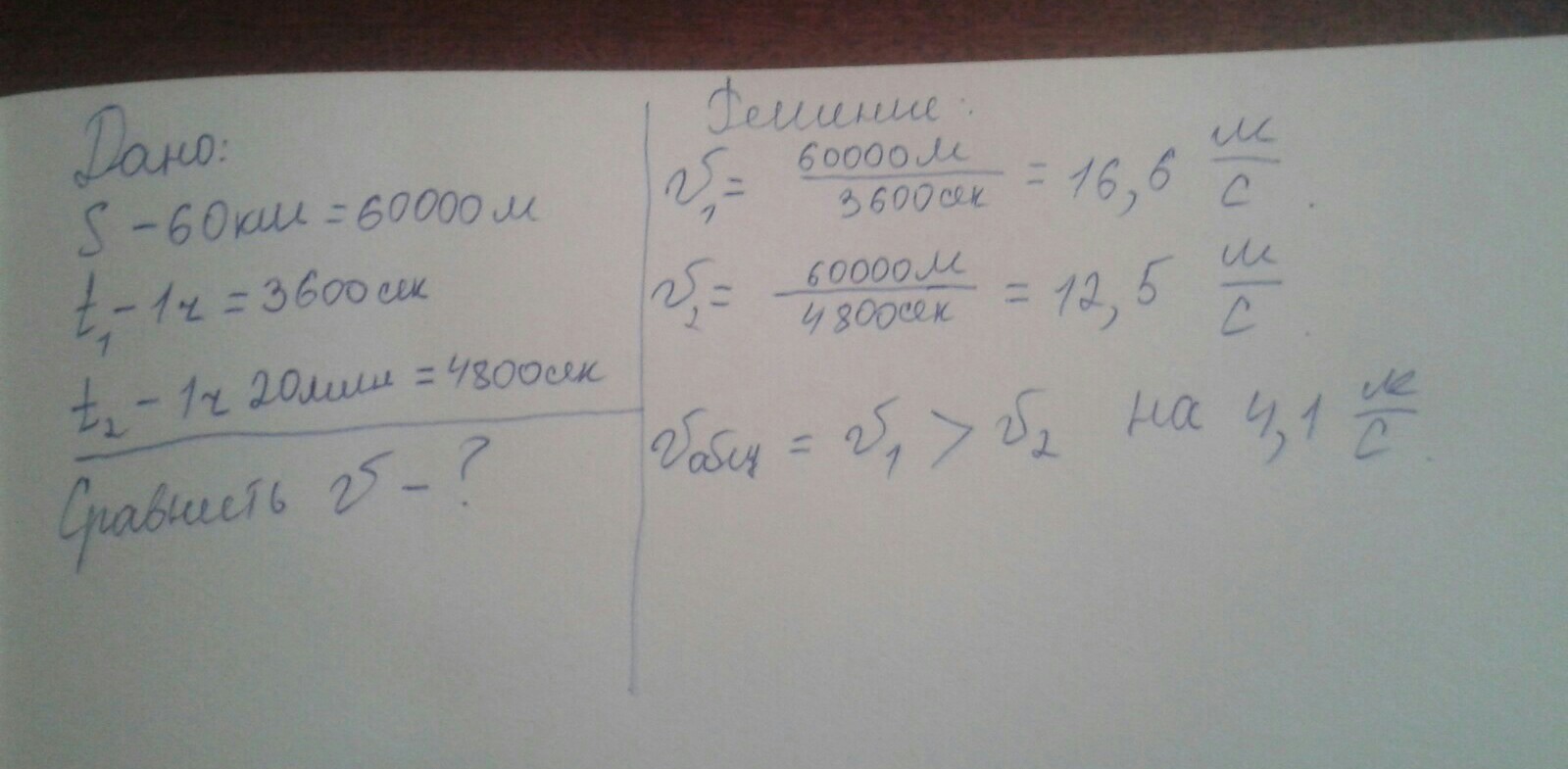 Путь 60 км заяц-русак пробегает за 1 ч, а волк -за 1 ч 20 мин.Рассчитайте и сравните скорости животных!