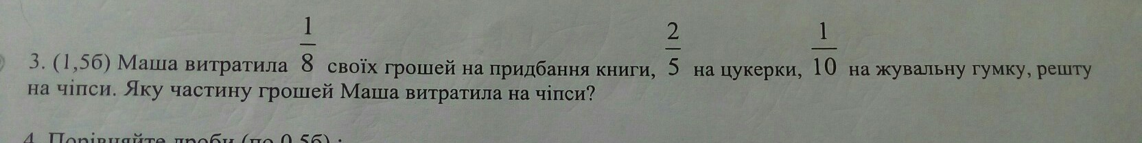 Значит на чипсы Маша потратила 8/8-5/8=3/8
