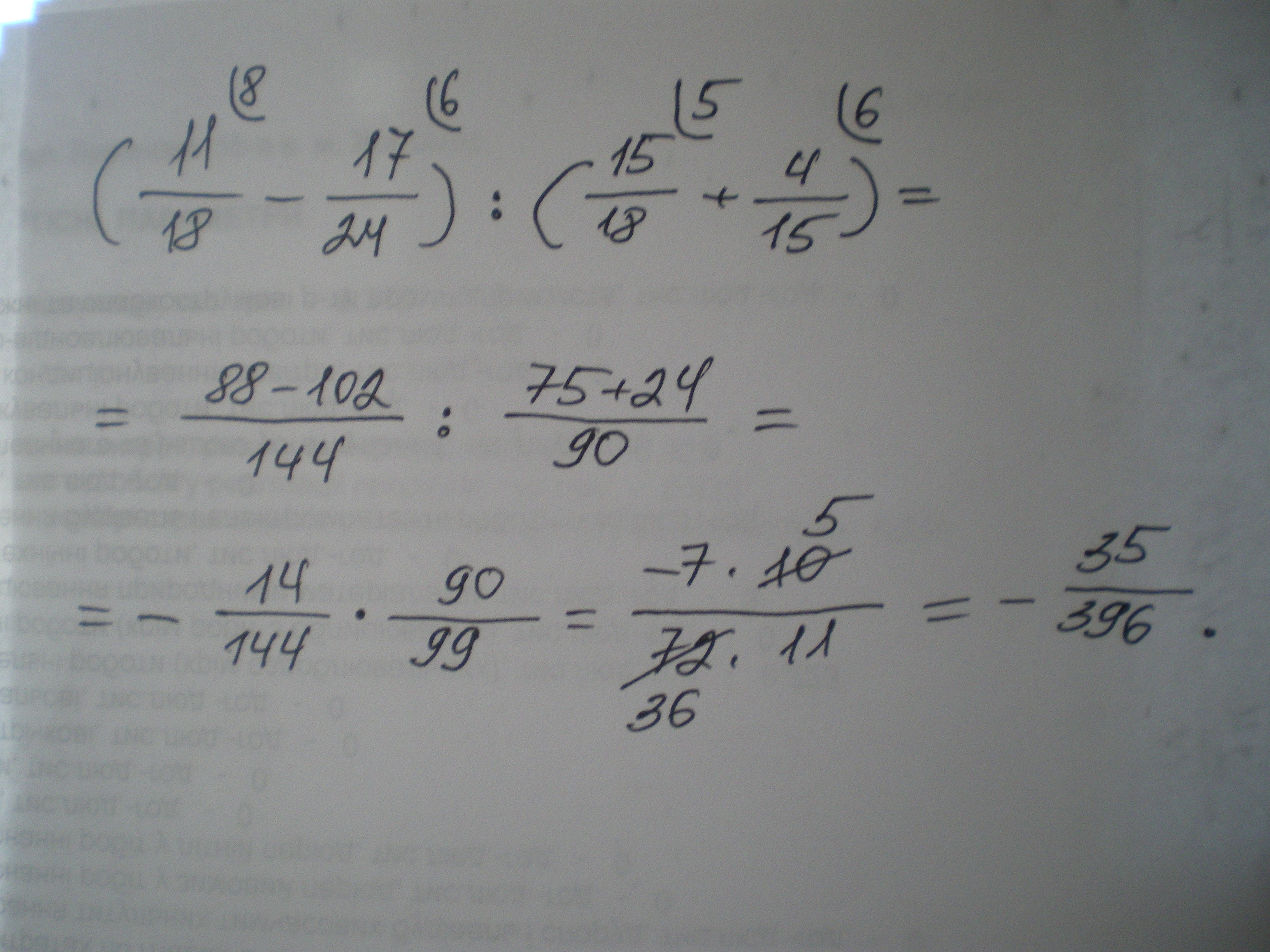 Помогите пожалуйста решить пример скобка открывается 11/18 - 17 24 скобка закрывается разделить скобка открывается минус 15/18 плюс 4/15 скобка закрывается. Пожалуйста Напишите на листочке ,сфоткайте и отправьте! И пожалуйста чтобы там всё было понятно!