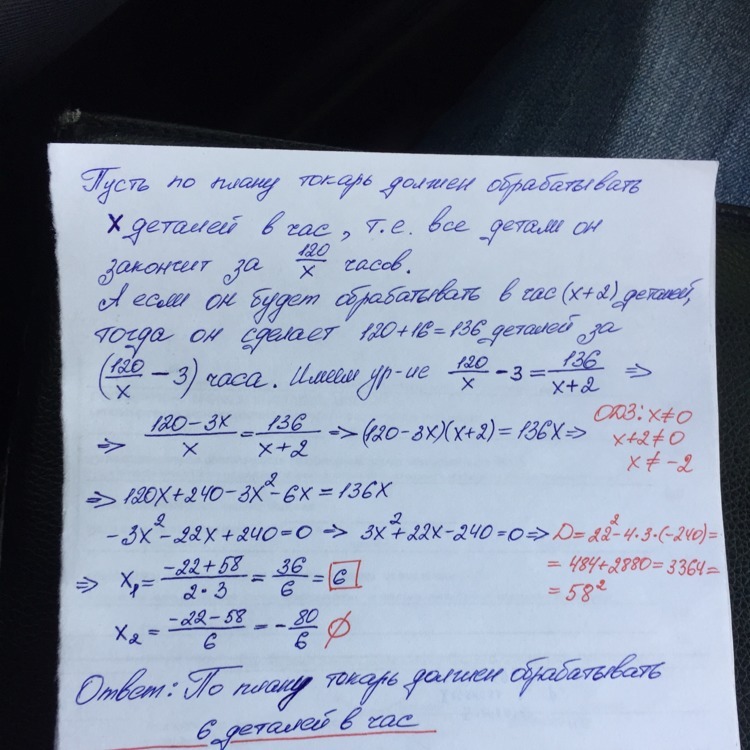 120/x(деталей в час) = план времени