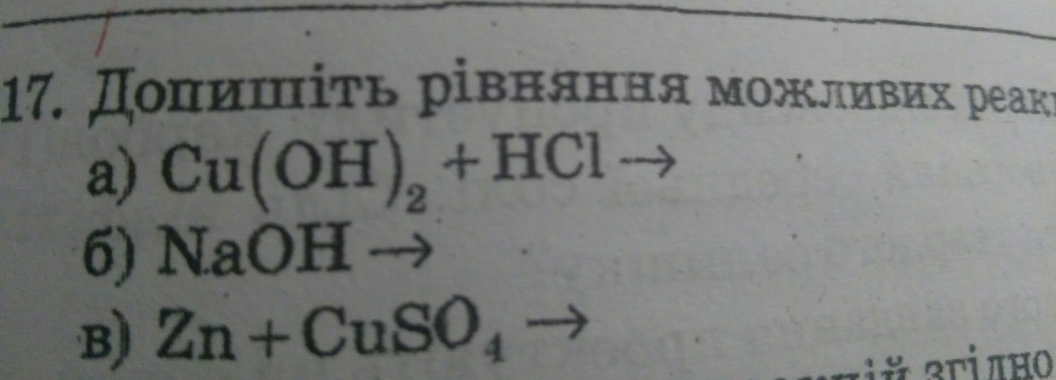 а) CuCl2+H20; б) Na+OH; в)ZnSO4+Cu