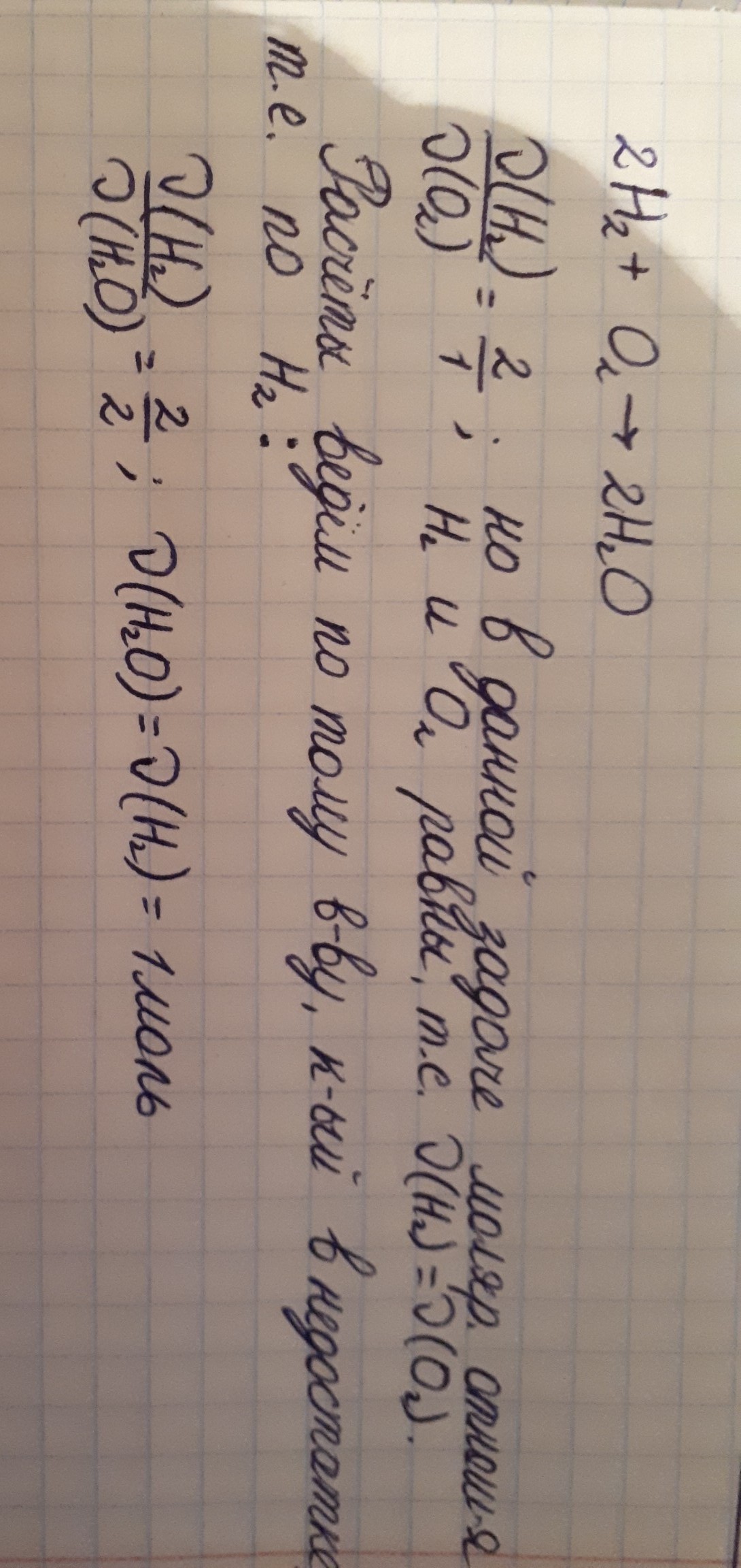 Сколько моль H2O образовалост при химической реакции, произошедшей в смеси одного моль водорода H2 и двух моль кислорода O2