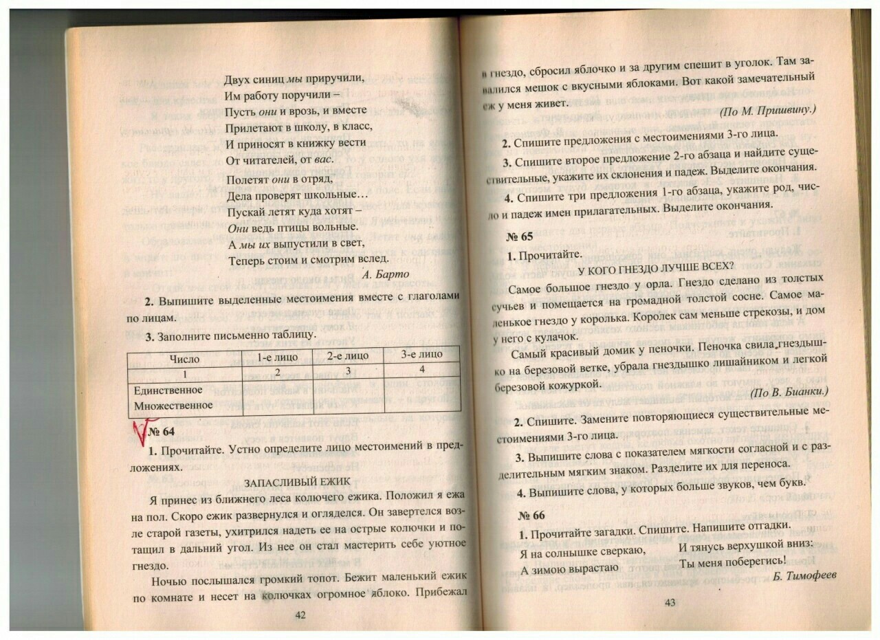2) Он завертелся возле старой газеты, ухитрился надеть её на острые колючки и потащил в дальний угол(местоимения 3 лица:он, её). Из неё он стал мастерить себе уютное гнездо( мест 3-л:он, неё).