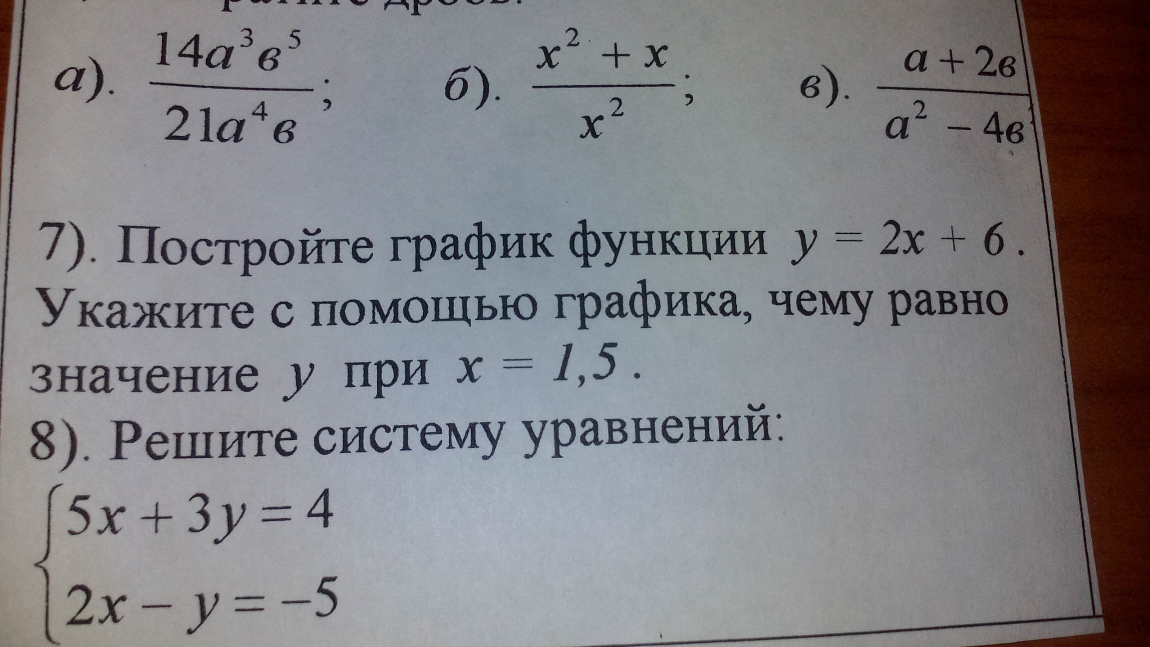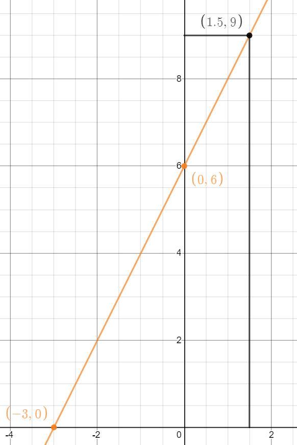 Смотрим по графику, при x=1.5 y=9, проверяем: 9=2*1.5+6=3+6, да верно.