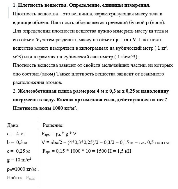2)Качественная задача на зависимость архимедовой силы от плотности жидкости и объема части тела,погруженного в жидкость.