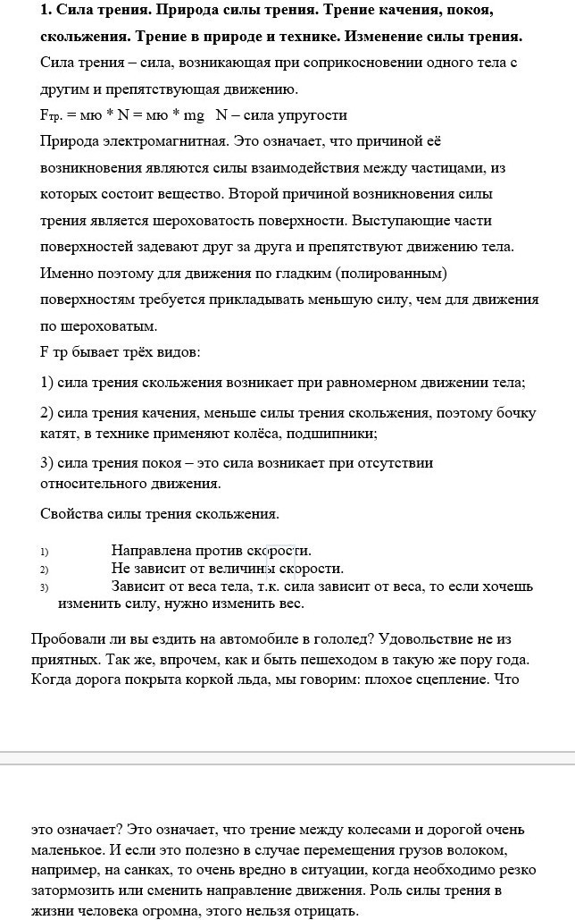 8.1)Сила трения.Трение в природе и в технике(Кратко)