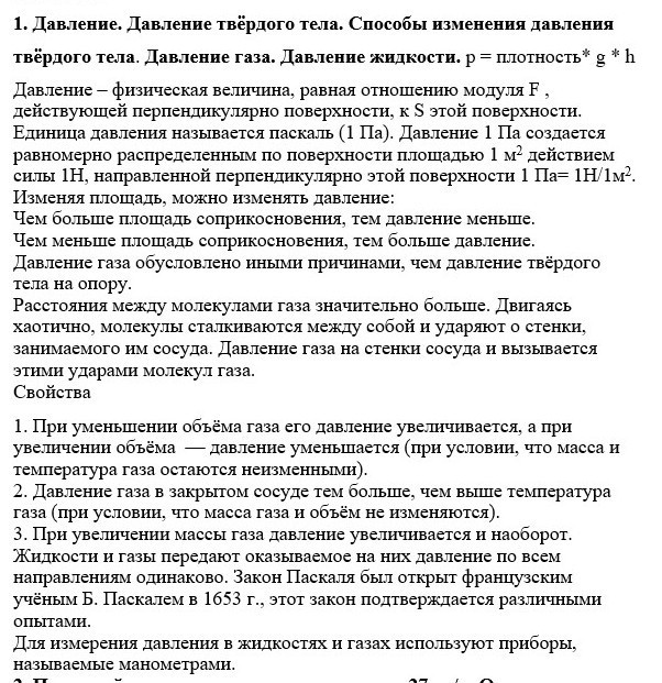 10.1)Давление газа.Объяснение давления газа на основе молекулярного строения вещества.(Кратко)