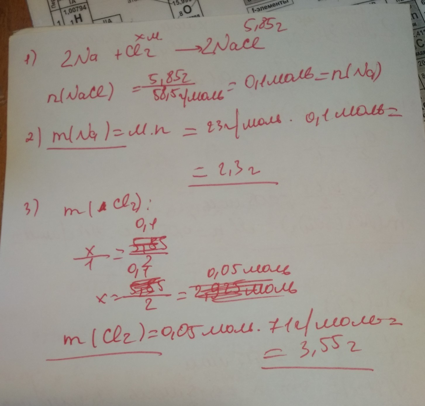 n(NaCl) = mM = 5,85 г58,5 гмоль= 0,1 моль