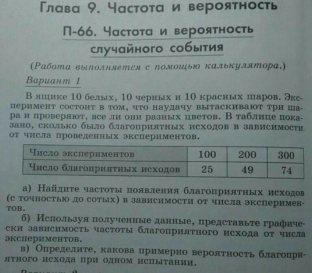 а) частота равна числу благоприятных исходов, деленных на число экспериментов: