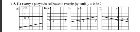 На рисунку В) тому що, функц. у=0,2х прямо-пропорцiйна, k>0, функцiя зроста"э" на всiй областi дiйсних чисел.
