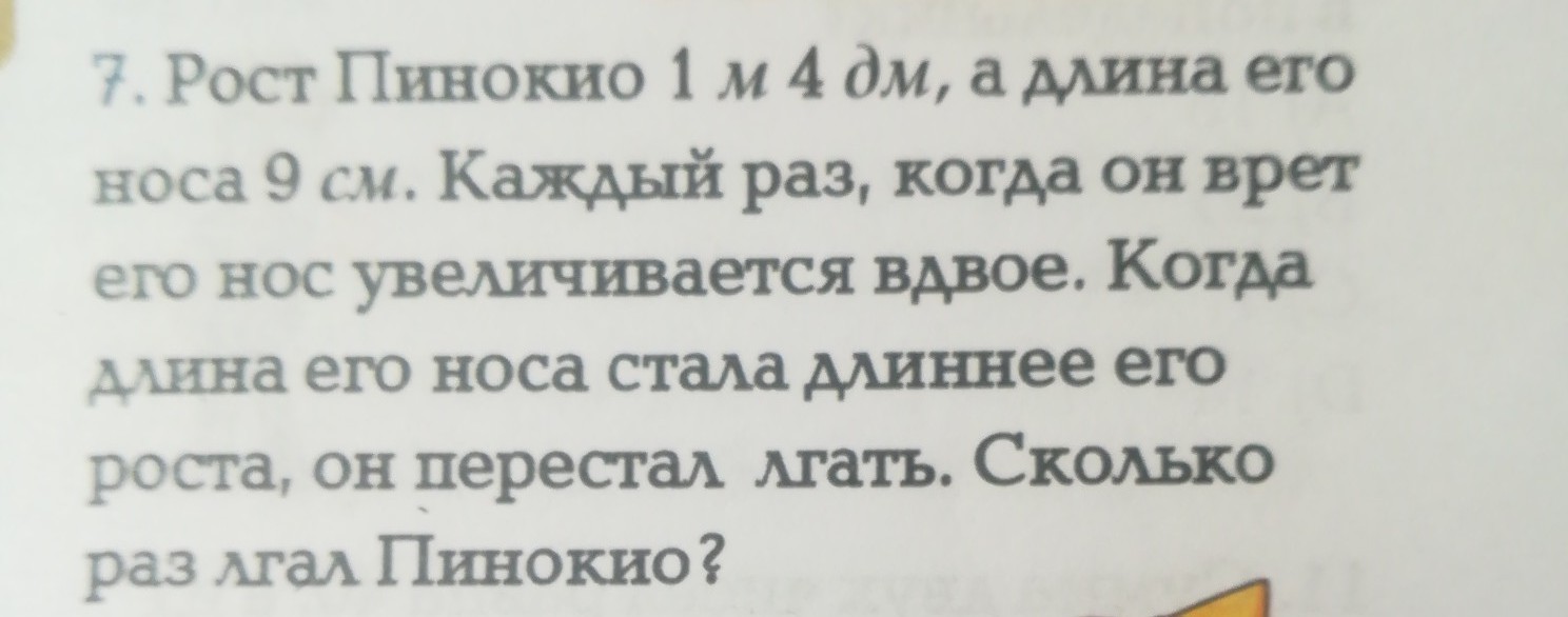 Так как 15*9=135 см, этого недостаточно, а 16*9=144, больше его роста, значит 16 раз Пинокио лгал
