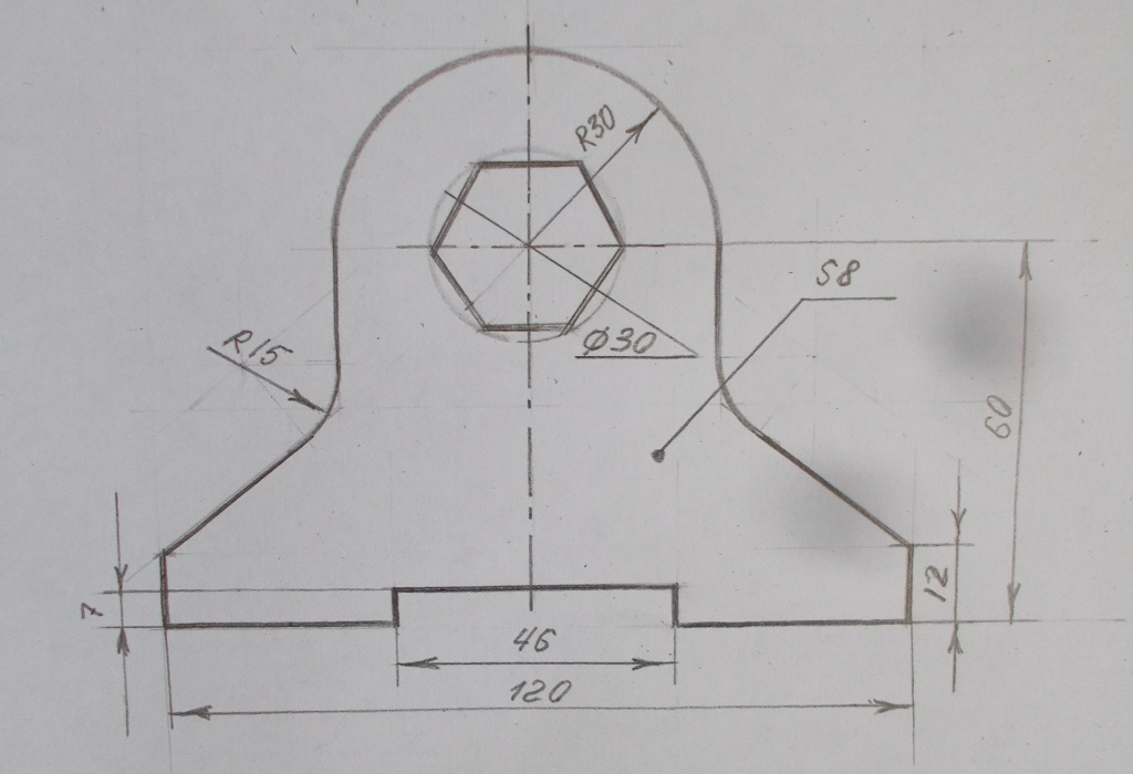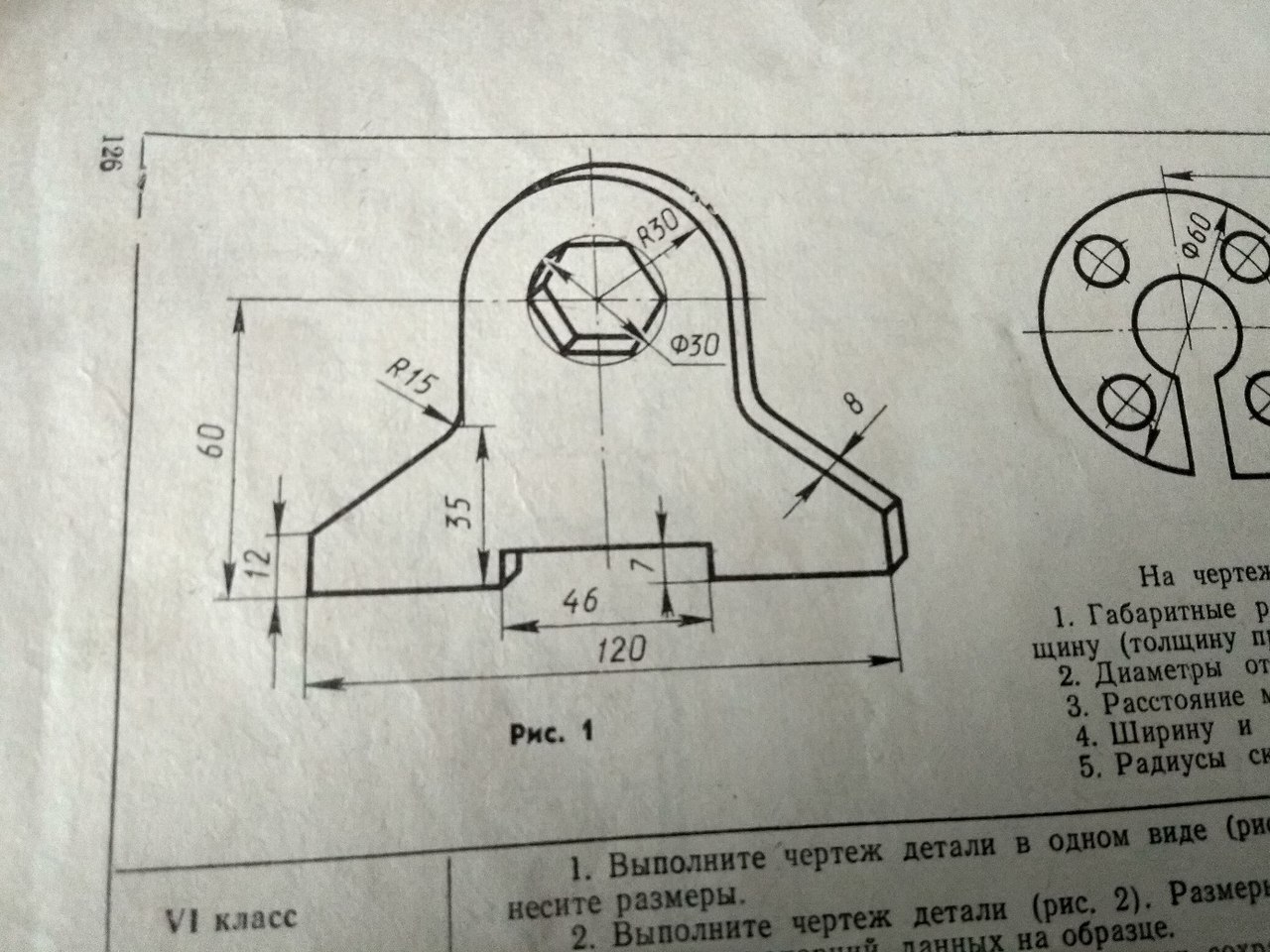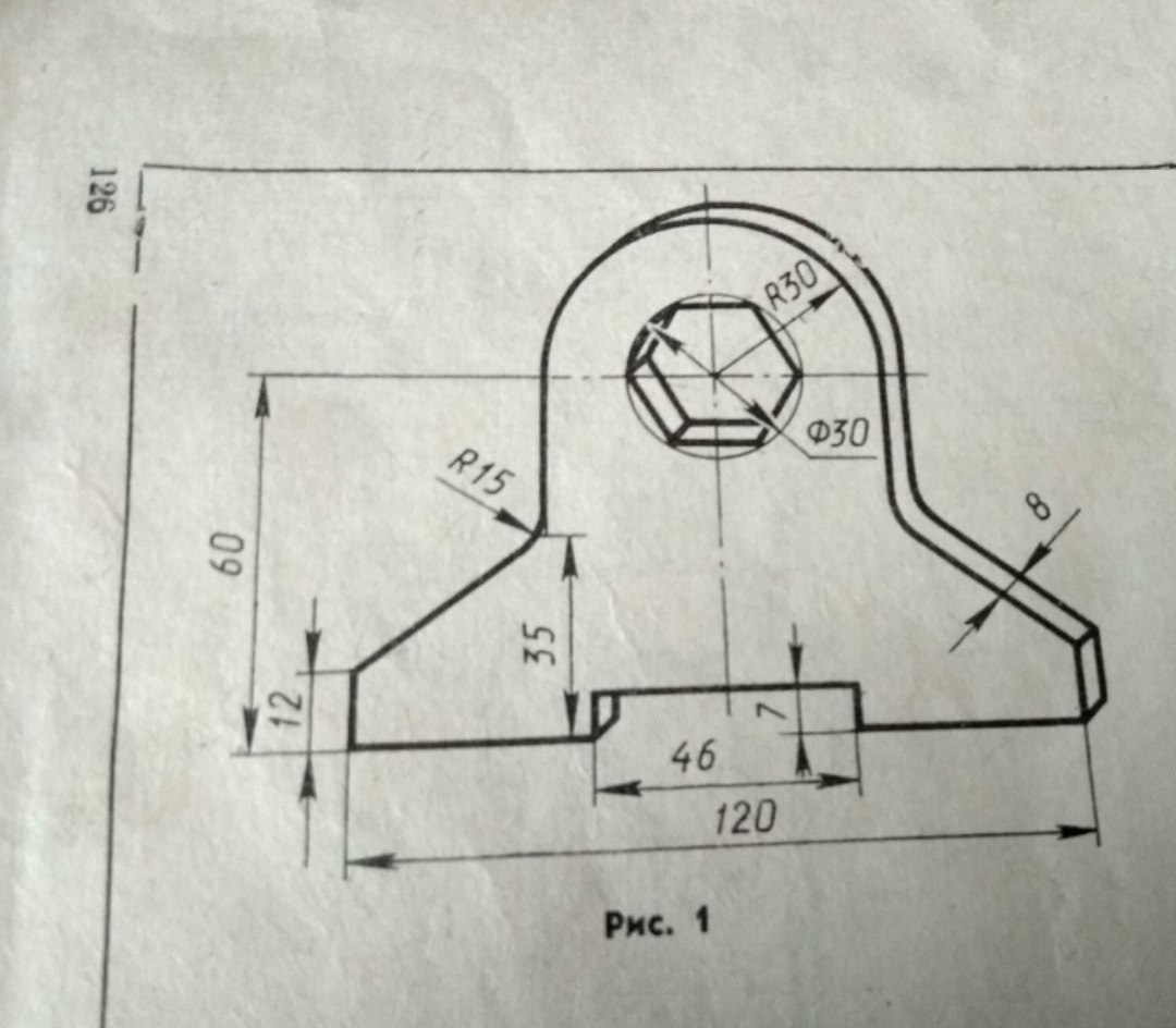 ДАМ 100 БАЛЛОВ. ребят, помогите пожалуйста с черчением. нужно выполните чертеж детали в одном виде (рис.1), указать ее толщину и нанести размеры.
