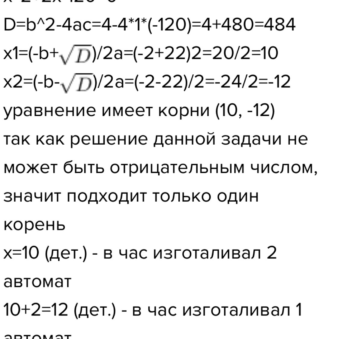 Два автомата должны были изготовить по 180 деталей.Первый автомат изготовлял в час на 2 детали больше, чем второй,и по этому закончил работу на 3 часа раньше. Сколько деталей изготовлял в час каждый автомат. Решите пожалуйста,срочно надо
