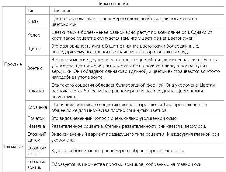 Соцветие -Это не отдельный видоизмененный побег, а целая их система, из которых затем образуются плоды с семенами. Соцветия обычно отграничены от вегетативных органов растения. - Читайте подробнее на