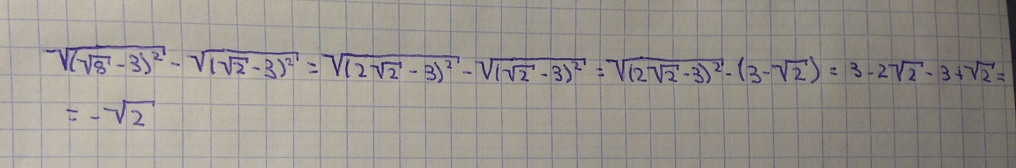 представим √8 как 2√2, а в уменьшаемом сократим степень корня и показатель степени на 2. затем сделаем это же с вычитаемым, после чего раскроем скобки уменьшаемого. сократим противоположные выражения и приведём подобные члены, получим -√2. смотри во вложении.
