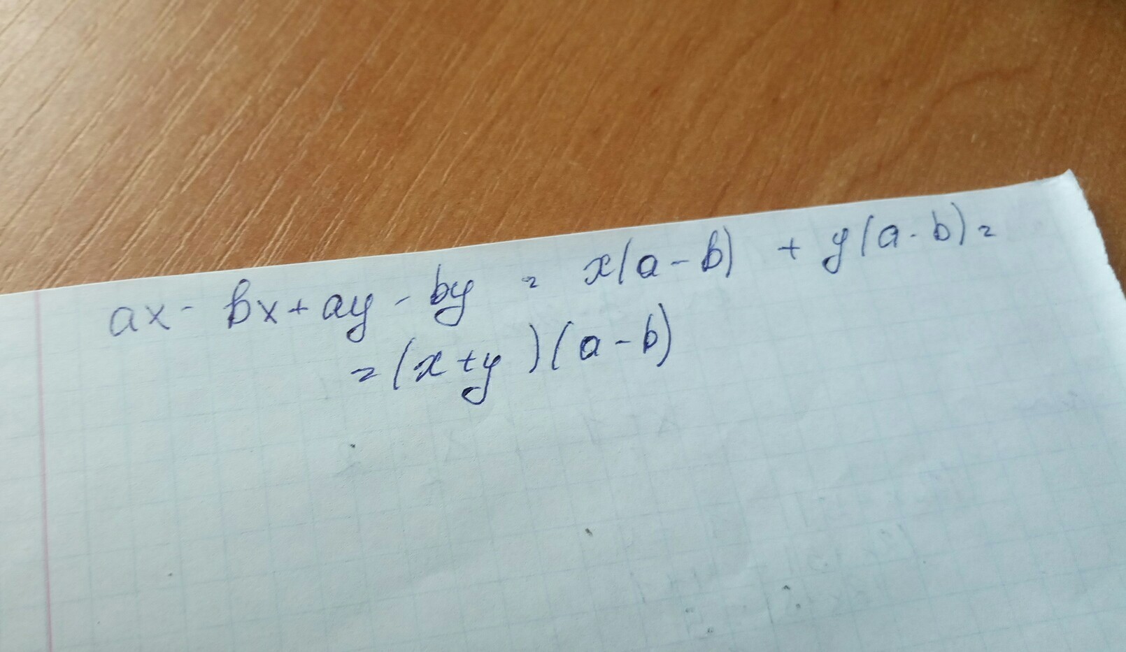 Помогите, пожалуйста, алгебра, 7 класс. Разложите на множители способом группировки многочлен: ax—bx+ay—by