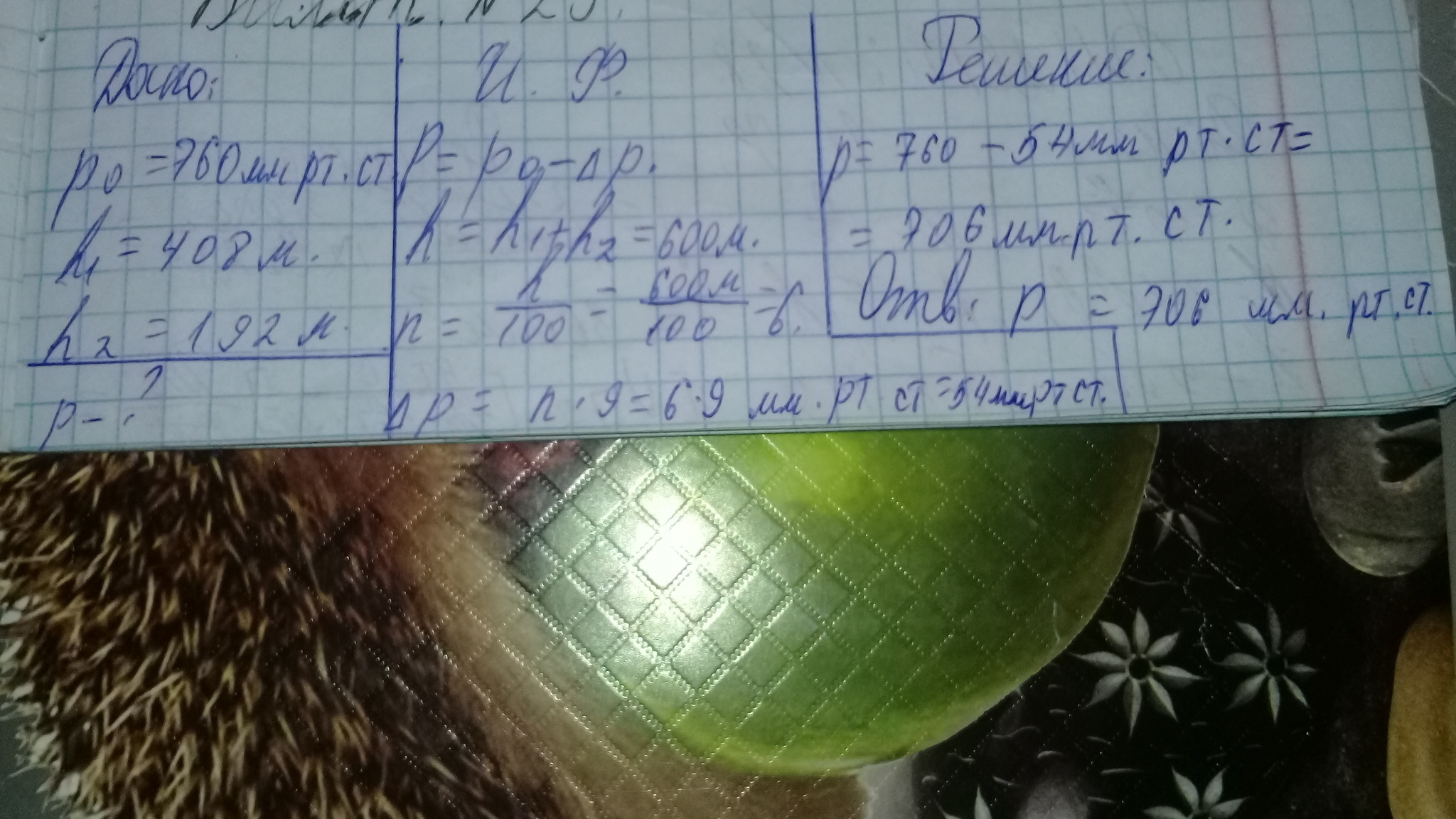 p=760-54мм.рт.ст.=706мм.рт.ст.