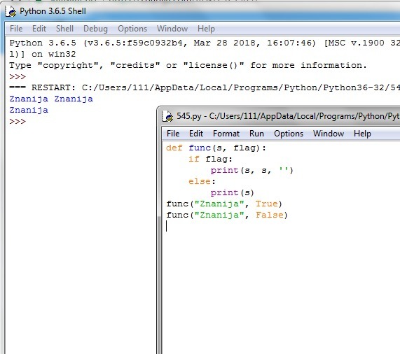 создать функцию, принимающую 2 параметра : строку и флаг(True/False). Если флаг True выводит два раза строку, если false один НА ПИТОНЕ!