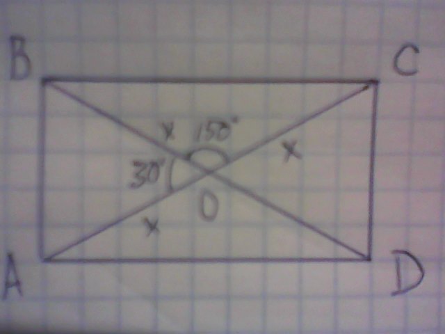 ∠АОВ=30°. ∠ВОС=180-30=150°.