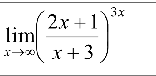 ((2x+1)/(x+3))^3x = ((2x+1)/x : (x+3)/x)^3x = ((2+1/x)/(1+3/x))^3x=(2)^3x = 2^∞ = ∞