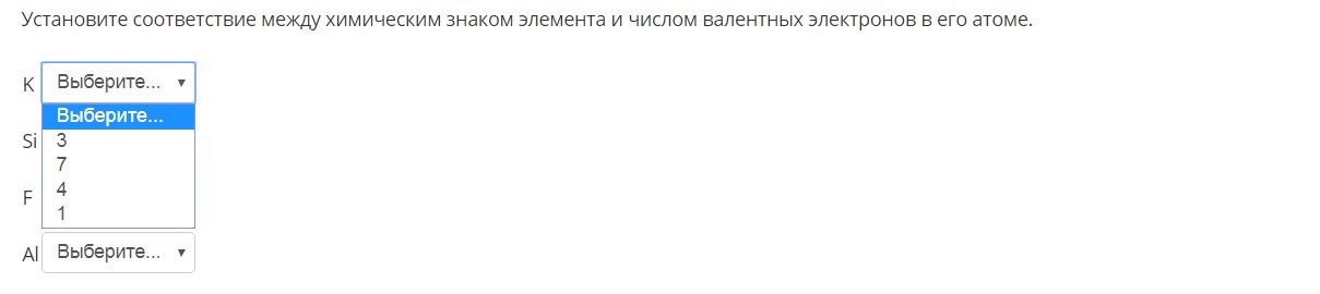 Установите соответствие между химическим знаком элемента и числом валентных электронов в его атоме.