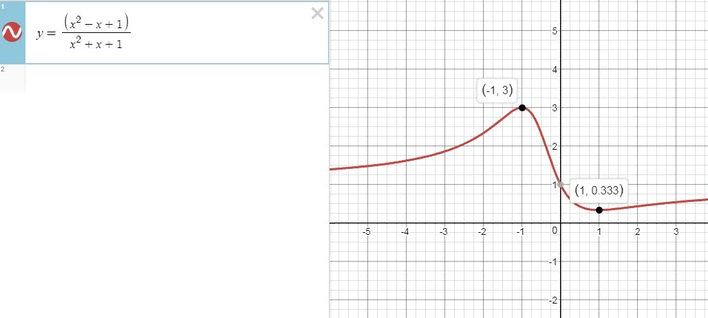 Помогите пожалуйста найти наибольшее и наименьшее значение функции на отрезке : x^2-x+1/x^2+x+1, [-2; 2]