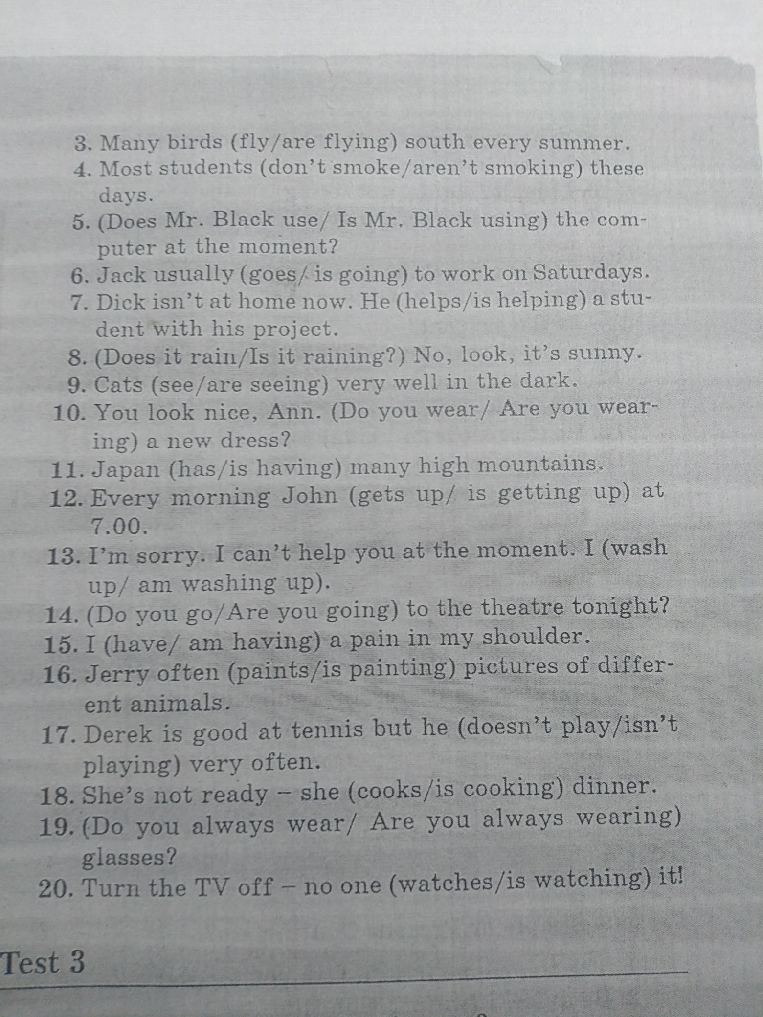 3-fly/4-do not smoke/5-is mr. Black using/6-goes/7-is helping/8-is it raining/9-see