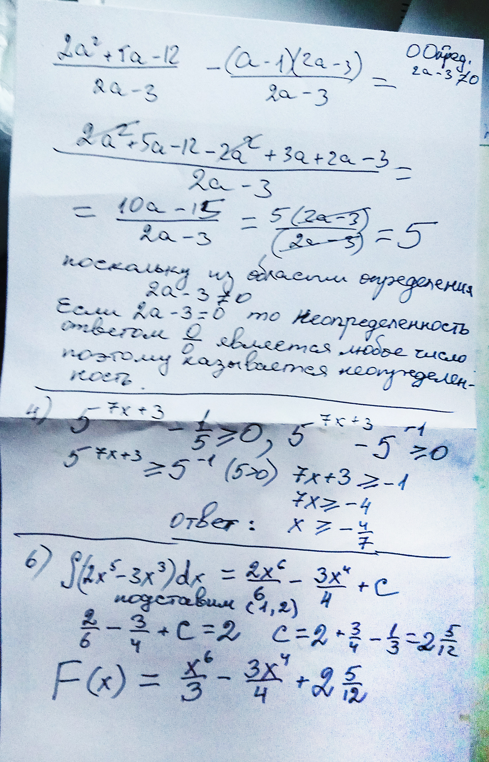 если экзамен то про определенность наверное не стоит писать если вы не проходили. в четвертом напиши,что подкоренное выражение неотрицательное,отсюда и область.А первый пример я только что кому-то написал