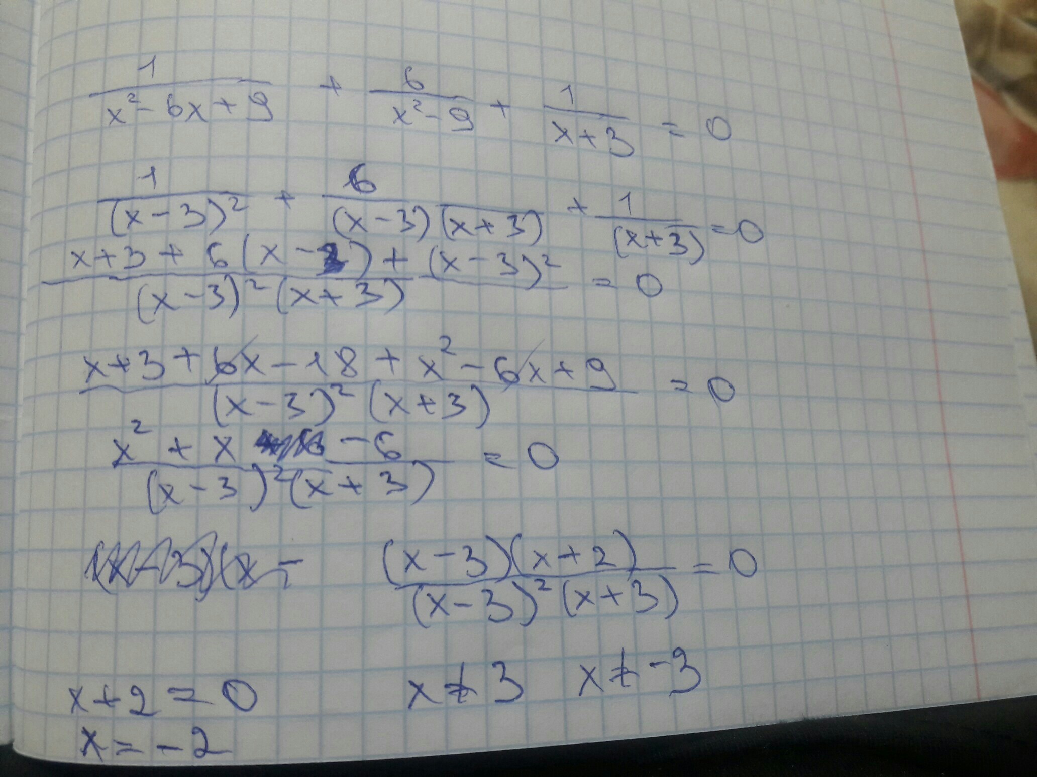 1/x²-6x+9 + 6/x²-9 + 1/x+3 = 0