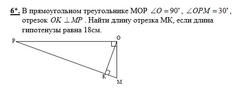 ΔMOP - прямоугольный, ∠О = 90°, PM = 18 см, ∠Р = 30° ⇒
