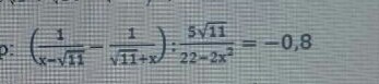 числитель получается (√11+х-х+√11)/(х²-11) : (5√11/2(11-х²)=