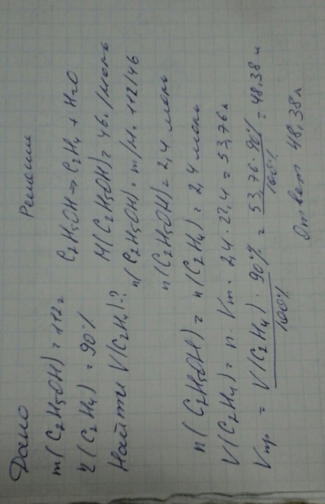 сколько этилена можно получить из 112 г этилового спирта, если выход составляет 90% от теоретического