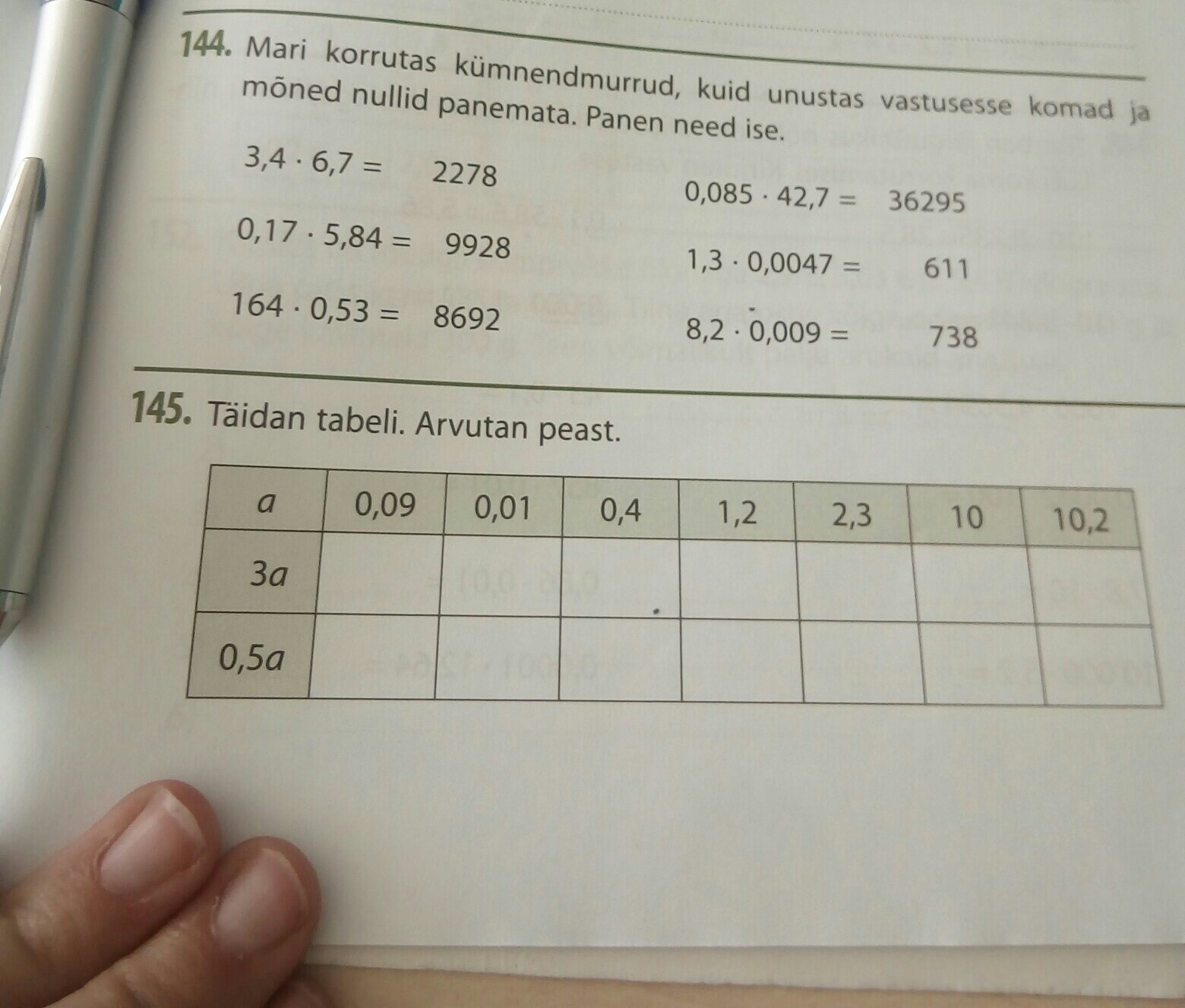 Ehk siis tabeli vastused us 3a on: