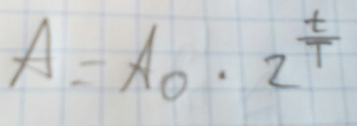 Есть формула, где А — конечная масса, Ао — начальная масса, t — время распада, Т — период полураспада. Этой формулы, вроде, нет в учебниках
