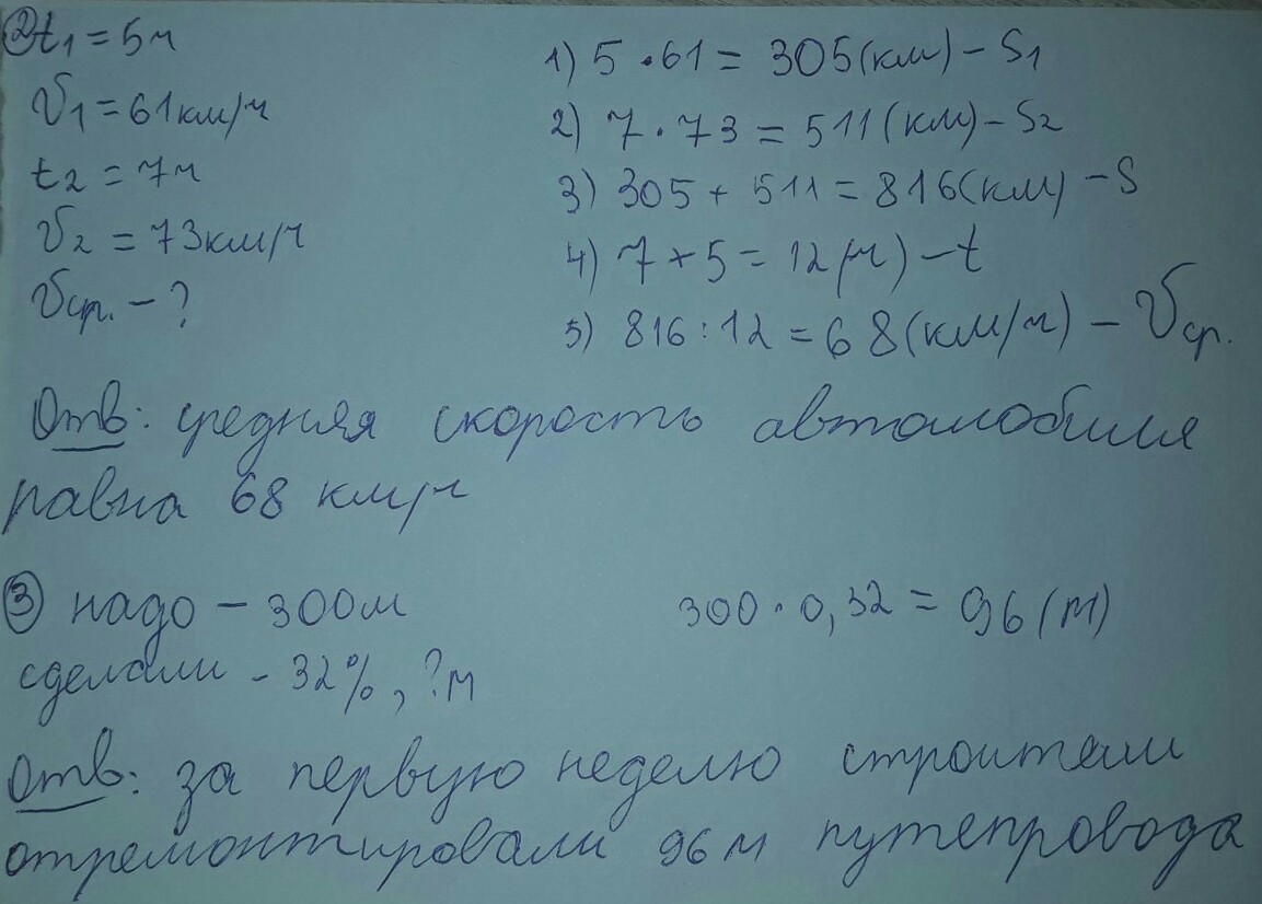 Автомобиль ехал 5 ч со скоростью 61 км/ч и 7 ч со скоростью 73 км/ч. Найдите среднюю скорость автомобиля на протяжении всего пути.