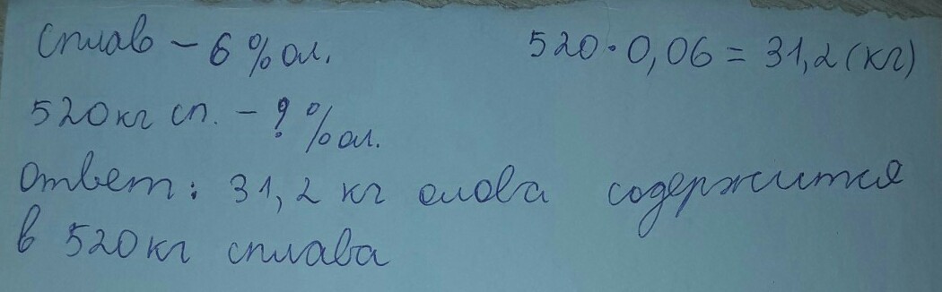 Сплав содержит 6% олова. Сколько килограммов олова содержится в 520 кг сплава?
