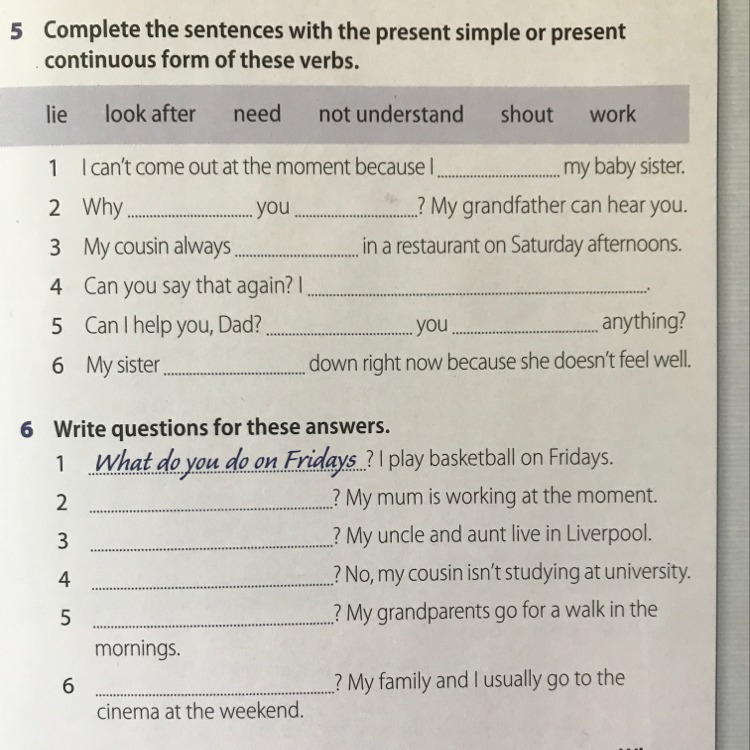 1. I can't come out at the moment because I'm looking after my baby sister.