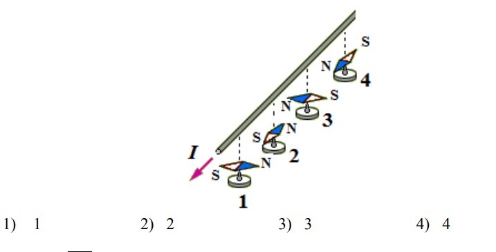 По правилу буравчика определяем направление магнитных линий. Они направлены от N к S влево. Стрелка будет притягиваться к магнитным линиям, поэтому правильный ответ 1), поскольку разноименные полюса притягиваются