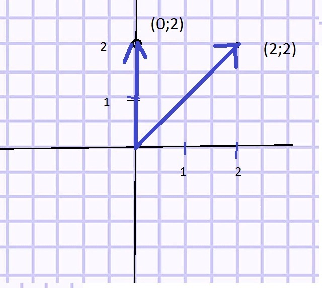 cosα=ab/(/a/*/b/)=(0*2+2*2)/((√0²+2²)*√(2²+2²))=4/(2√8)=4/(2*2√2)=