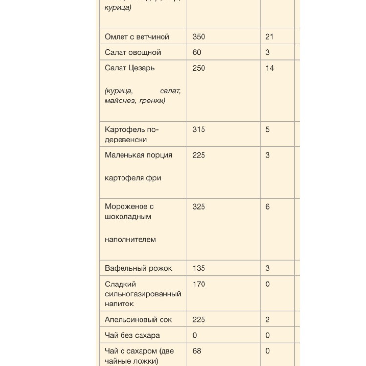 В воскресенье утром 15-летний Константин побывал в историческом музее, а в ужин посетил ресторан быстрого питания. Используя данные таблиц 1, 2 и 3, рассчитайте рекомендуемую калорийность ужина, если Константин питается четыре раза в день. Предложите школьнику оптимальное по калорийности, с максимальным содержанием углеводов меню из перечня предложенных блюд и напитков. При выборе учтите, что Константин обязательно закажет омлет с ветчиной. В ответе укажите: калорийность ужина; заказанные блюда, которые не должны повториться; их энергетическую ценность, которая не должна превышать рекомендованную калорийность ужина, и количество углеводов в нём.