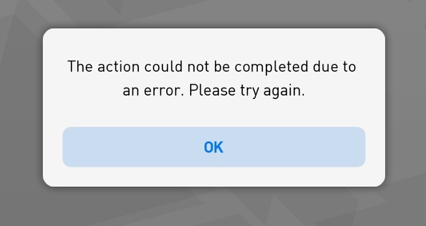 Действие не может быть завершено из-за ошибки.Пожалуйста повторите снова.Хорошо